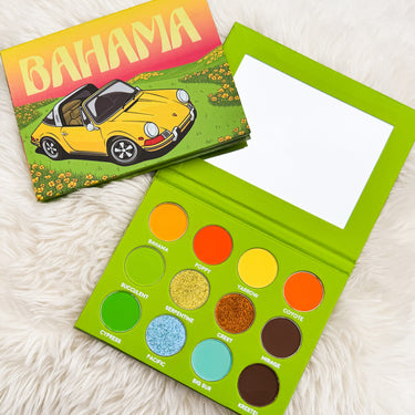 The Bahama Eye Shadow Palette is a tropical inspired palette, featuring 12 shades. The palette includes 9 vivid mattes and 3 shimmers, each pigment is rich, bendable, and built to last all day. Perfect for nights out, parties, creative looks, or bold costume makeup.